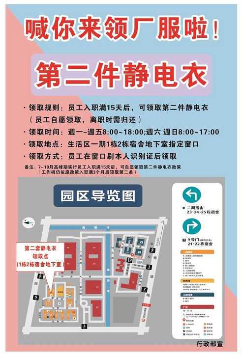 【公告】員工入職滿15天后,可自愿領取第二件廠服。